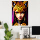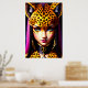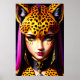 retrato de un guepardo chica Zoomórfico con ojos amarillos. Este es un arte generado por IA.