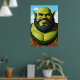 Retrato de un enano orco híbrido con piel verde y barba negra (Medio orc, Medio enano). Este es un arte generado por IA.