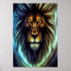 Retrato de la cabeza de un león con una forma de color oscuro. Este es un arte generado por IA.