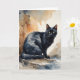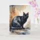 Hermoso retrato en acuarela de un gato negro con ojos amarillos.