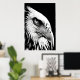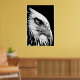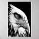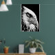 Retrato en blanco y negro de un águila adorable y adorable sobre un fondo negro. Este es un arte generado por IA.