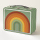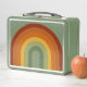 Diseño de arcoiris de la caja de almuerzo retro. capas de arcoiris en colores apagados, naranja, rojo y verde.
