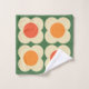 Retro 70s Scandinavian minimalist orange geometric flowers with petals on a green background. Great for accessories, apparel, bags, home decor, living decor, kitchen accessories, and stationery.