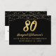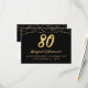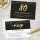 Tarjeta de gabinete RSVP para incluir con una invitación de fiesta de 80 cumpleaños con tipografía retro y luz de cuerda en negro y oro. ASISTENCIA: Para obtener ayuda con la modificación o personalización del diseño, transfiriendo el diseño a otro producto o si desea coordinar elementos, póngase en contacto con el diseñador ANTES DE PEDIDOS a través de la pestaña MENSAJE de chat Zazzle o envíe un correo electrónico a makeitaboutyoustore@gmail.com.