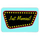 Este imán Just Married se parece a un signo de neón retro. El diseño es de arte original.