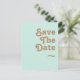 Esta postal retro de playa | aqua para guardar la fecha es perfecta para tu boda de verano boho tropical vintage simple y colorida. Su fuente bohemia única de mediados de siglo le da a este diseño un ambiente hippie clásico minimalista y divertido. Supongamos que estás buscando un diseño que presente colores oceánicos costeros rústicos y brillantes para tu creativa boda de destino en la playa de los 70. En ese caso, este producto y su colección de boda coordinada son lo que estás buscando. Siéntete libre de cambiar el color y agregar tu propia obra de arte, gráficos o fotos. Si tienes alguna pregunta sobre el diseño de este producto, no dudes en hacérnoslo saber.