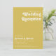 Esta invitación de recepción de boda de oro de playa retro es perfecta para su recepción de verano boho tropical vintage simple y colorida. Su fuente bohemia única de mediados de siglo le da a este diseño un ambiente hippie groovy minimalista clásico. Supongamos que está buscando un diseño que presente colores oceánicos costeros rústicos y brillantes para su creativa boda de destino de playa de los 70. En ese caso, este producto y su colección de bodas coordinada son lo que está buscando. Siéntase libre de cambiar el color y agregar su propia obra de arte, gráficos o fotos. Si tiene alguna pregunta sobre el diseño de este producto, no dude en hacérnoslo saber.