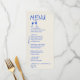 A colorful retro funky modern blue cream wedding dinner menu. Which features chic template design of boho vintage cream background on the front and back. With Blue whimsical typography and hand drawn blue wine glasses. Perfect and matching with the whole suite.