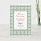 Estas impresionantes tarjetas de vacaciones plegables de estilo vintage presentan un diseño de Navidades colorido y caprichoso. Un arco rojo brillante está rodeado por un follaje botánico de color agua verde, y un patrón de vacaciones retro a juego con un fondo verde claro forma el marco exterior. La tipografía de escritura de moda dice "Feliz Navidad".