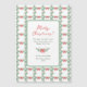 Estas impresionantes tarjetas de vacaciones magnéticas de estilo vintage presentan un diseño de Navidades colorido y caprichoso. Un arco rojo brillante está rodeado por un follaje botánico de color agua verde, y un patrón de vacaciones retro a juego con un fondo blanco conforma el marco exterior. La tipografía de escritura de moda dice "Feliz Navidad".