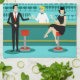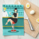 Cada hora es feliz con esta toalla de Personalizable Retro Cocktail Lounge. El diseño moderno de mediados de siglo presenta un vibrante estilo de los años 60, minimalista y personalizado de un elegante bar de cócteles. En el fondo de una pared acuática, se pueden ver filas de vasos de bebida. Al menos podemos ver las siluetas verde azuladas de los vasos de bebida. A juzgar por las formas de los tallos, este bar está bien equipado para mojar tu silbato, sea cual sea tu preferencia por la bebida. Un camarero muy competente y muy agradable se encarga del bar verde azulado con acentos amarillos. El joven camarero lleva una camisa blanca y prístina con corbata de arco negro. Su buena apariencia de cara fresca, su pelo rubio y sus gafas de hipster negro nos dan todas las razones para creer que pasa sus días como actor en dificultades o superhéroe. Por un lado, el guapo mixólogo está entregando un martini a un cliente del lado opuesto del bar. El cliente que espera es un caballero de hombros anchos con un traje negro y corbata roja. Es el tipo de tipo que se describe como alto, oscuro y guapo incluso cuando faltan horas para la hora de cierre. Parece haber un taburete rojo y cromado con el nombre del señor Debonair. Sin embargo, para no ser presuntuoso, se pregunta: "Perdóname. ¿Está ocupado este asiento?" Le está pidiendo a la chica de pelo cuervo en el taburete del bar vecino. Ella es una verdadera "chica de al lado", si resulta que vives al lado de una belleza impecable con una figura que no renunciará. Lleva puesto un vestido negro y sostiene un martini en una mano. Ella espera que ella y el caballero que se acerca tengan más en común que su preferencia por la bebida y la elección del color del armario. Parece que esta noche se puso interesante. ¡Salud! Personaliza para hacer un accesorio adorable para tu barra húmeda.