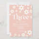 Retro Daisy TRES Invitación de tercer cumpleaños a