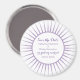 Sofisticado y elegante Deco Retro Save the Date Magnet en morado con un diseño circular de arte deco ornamental de la explosión del sol. Fácil de personalizar, simplemente agregue los detalles de su boda en los campos de texto proporcionados. Haga clic en "Personalizar" para encontrar más opciones de personalización.
