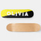 simple skateboard amarillo y negro para él, para ella o para ellos, es tu nombre personalizado con una atrevida y afligida letra. Obtén el diseño abstracto perfecto para un cumpleaños adolescente o un regalo de Navidad. Simplemente escribe tu propio nombre para un patineta personalizado.