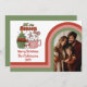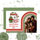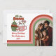 Diseño fotográfico de arco retro con marco a rayas en tonos rosa oscuro, terracota y verde sabio sobre blanco "Esta temporada".