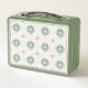 Retro green lunchbox with a floral tile pattern