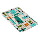 Este Retro Grid y Starbursts Flexible Magnet es donde el estilo vintage se une a los tiempos modernos. El fondo es de color crema, con kitsch, cuadrados y rectángulos fuera de kilómetros en verde azulado, turquesa, azul claro, naranja y verde aguacate. Los bloques de color caprichosos se ven superpuestos en algunas de las intersecciones de la cuadrícula. También hay rectángulos negros con líneas verticales y horizontales negras formando un patrón de cuadrícula. Diseños y cuadrados de estallido negro colocados esporádicamente a lo largo de este tapiz de color moderno de mediados de siglo. Agarra tus botas de go y fondo de timbre y disfruta de esto hasta los años 60.