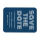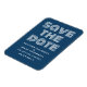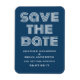 Retro Guardar el imán de fecha en azul y blanco con un diseño de tipografía moderna y divertida. Este moderno y elegante ahorra la fecha imán es fácil de personalizar con los detalles de su boda. Para obtener más opciones de personalización, haga clic en el botón Personalizar.