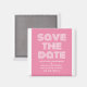 Retro Guardar el imán de fecha en rosa y blanco con un diseño de tipografía moderna y divertida. Este moderno y elegante ahorra la fecha imán es fácil de personalizar con los detalles de su boda. Para obtener más opciones de personalización, haga clic en el botón Personalizar.