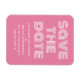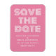 Retro Guardar el imán de fecha en rosa y blanco con un diseño de tipografía moderna y divertida. Este moderno y elegante ahorra la fecha imán es fácil de personalizar con los detalles de su boda. Para obtener más opciones de personalización, haga clic en el botón Personalizar.