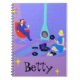 Este retro adaptable igualando en casa el cuaderno parece una escena fuera de una comedia romántica de los años 60. Las características del diseño minimalistas un par atractivo del dibujo animado en la sala de estar de una casa moderna de los mediados de siglo. El cuarto ofrece prominente una pared de piedra púrpura y azul y una manta rayada púrpura y azul a juego. Contra la pared, hay una turquesa, chimenea cónica con un fuego del rugido. En la esquina, el hombre suave de la casa está ganduleando en una silla roja del huevo. Él está llevando un juego azul con un lazo azul. En una mano, él está sosteniendo un martini de cristal. ¡Ninguna maravilla él es tan relajado! Colgando del techo, hay un amarillo, lámpara de Sputnik. Una mujer con una figura del reloj de arena se está sentando en la manta. Ella está llevando un vestido vibrante, azul y no un pelo está fuera de lugar en su blonde flippy "hace". Al lado de ella, en el piso, hay tocadiscos portátil azul y negro. Varios álbumes de disco de vinilo se dispersan cerca del disc jockey hermoso. Continúe y cante adelante. ¡Usted sabe que usted quiere a! Debajo del diseño, hay un montón de sitio para personalizar con el nombre del beneficiario.