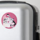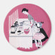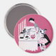 Una niña pequeña y el mascota de la familia tratan de entrar en acción en este adorable imán de los años 50.