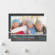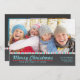 Un bonito diseño inspirado en el pizarrón, con estilo retro, para enviar a la familia y amigos que les desean una Feliz Navidad de tu familia a la de ellos. Cuenta con una gran foto en la parte delantera y espacio para tres fotos adicionales y un mensaje personalizado en la parte posterior. Las divertidas y coloridas franjas coordinadoras agregan un toque de color y capricho al diseño.