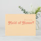 Retro moderno | La tarjeta de naranja de la dama de honor es perfecta para su boda de verano boho tropical, de color y vintage sencillo. Su original fuente bohemia de mediados de siglo le da a este diseño un minimalista y clásico ambiente hippie. Si buscas un diseño con colores brillantes y llamativos para tu boda playera de los años 70, entonces este producto, y su colección de bodas coordinadores, son precisamente lo que buscas. No dudes en cambiar el color y añadir tu propia obra de arte, gráficos o fotos. Si tiene alguna pregunta sobre el diseño de este producto, por favor, no dude en ponerse en contacto con nosotros.