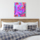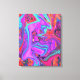 Esta pintura de aceite digital original de My Rubio presenta un diseño de arte líquido retro-púrpura, azul y Naranja sobre follaje hidrato abstracto con acentos de magenta, rosa caliente y Aqua. El resultado es un cuadro de jardín colorido y colorido que te encantará.