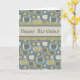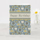 Negocio de todos nosotros tarjeta de cumpleaños con un colorido patrón retro azul y texto divertido. Perfecto para los empleados. Personalizable, también disponible en otras tarjetas.