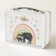 Un bonito arco iris pastel, corazones y sol con un par de elefantes adorables. Perfecto para volver a la escuela. ¡personalizar el nombre y hazlo suyo!