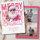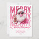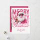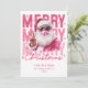 Retro Pink Santa Feliz Navidad 3 Foto Familia