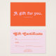 Add a touch of retro charm to your gifting options with this stylish gift card, perfect for both small businesses and school functions. The front captures a fun, vintage feel with a bold "A Gift ForYou" heading in the decorative "Tango" font, set against a nostalgic color palette of retro orange and pink. All supporting details are presented in the clean, highly-readable sans-serif font "Lato," ensuring clarity. The back is thoughtfully designed with essential spaces for "To" and "From," the gift amount, and your contact information, making it a versatile and practical choice for boutiques, cafes, or school stores and fundraisers.