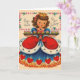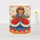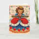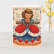 Tarjeta de felicitación Vintage / Retro Birthday. ¡Hermosa pequeña reina con una gran bandeja de quequitos! ¡Reina de los corazones! ¡En tu cumpleaños!