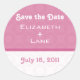 Moderno y elegante retro romántico salva a los pegatinas de fecha en color rosa pétalo. Estos pegatinas divertidos y divertidos harían de una manera elegante para que sus amigos y familia sepan de sus próximos nupciales. Fácil de personalizar, simplemente cambia los nombres y fechas para reflejar tu propio día especial!