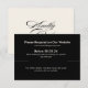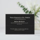 Esta sofisticada tarjeta de respuesta RSVP negra está diseñada para complementar perfectamente el tema de su elegante boda. Con un diseño minimalista pero impactante, la tarjeta invita a sus invitados a responder a través de su sitio web de boda personalizado. La tipografía elegante y el diseño discreto crean un aspecto atemporal, lo que garantiza que la papelería de su boda deje una impresión duradera. Utilice esta tarjeta para recopilar respuestas RSVP de manera fácil y proporcionar detalles adicionales del evento, como menús y horarios, manteniendo siempre una estética coherente y elegante para su gran día.