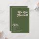 Esta simple retro | la invitación de elopement verde oliva es perfecta para su empotrado de tonalidades de tierra vintage. El diseño presenta una minimalista fuente hippie rústica tipo boho. La paleta de colores neutros del desierto del suroeste y las letras bohemias de mediados de siglo se combinan para un diseño perfecto y minimalista moderno de destino occidental. No dudes en cambiar el color y añadir tu propia obra de arte, gráficos o fotos. Si tiene alguna pregunta sobre el diseño de este producto, por favor, no dude en ponerse en contacto con nosotros.