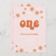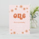 ¡Uno! Invitación de primer cumpleaños inspirada en el retro con daisies de estilo de los años 70 y fuentes y colores boho.