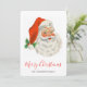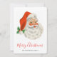 Una tarjeta de Navidad plana con una imagen retro festiva. Alegre anciano Papá Noel con sus mejillas sonrosadas y cálida sonrisa amistosa. Un poco de nostalgia a la antigua para los veteranos, esta imagen trae recuerdos de las celebraciones de la Navidad pasada.