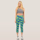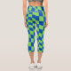 Retro Y2K Checkerboard Capri Leggings , Funky Trendy blue & green Checkerboard Leggings
