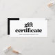 Este moderno certificado de regalo para pequeñas empresas en blanco y negro presenta una elegante tipografía retro. Hay un sitio para tu logo en la parte trasera.
