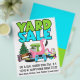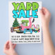 Bright blue and green retro yard sale flyer with Flamingo Pool float