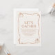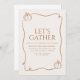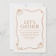 Este minimalista establecimiento ofrece un ambiente cálido y moderno para el Día de Acción de Gracias o el Día de la Amistad, con un borde de cinta dibujada a mano y pequeños acentos de calabaza en tonos cálidos y de canela. Haga clic en Personalizar esta plantilla para actualizar los nombres de host, fecha, hora, dirección, RSVP y notas (detalles de sutileza, código de vestimenta, etc.); también puede ajustar fuentes y colores en la Herramienta de diseño. Imprimida profesionalmente como una tarjeta plana de 5" × 7" en su elección de papeles premium (Matte, Felt, Linen, Pearl Shimmer, Kraft o Reciclado).