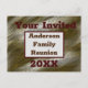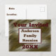 Anuncie su próxima reunión familiar con estilo con la postal del patrón de rayas abstractas de oro y plata. La parte delantera de la postal de la invitación tiene fuertes rayas diagonales de plata y oro junto con un patrón de rejilla de agujeros pequeños. El nombre y el año de su familia aparecen en la parte delantera con mucho espacio en la parte trasera para personalizar con información específica de eventos. Todo el texto, así como los colores de texto, tanto en la parte frontal como en la parte posterior, se pueden personalizar fácilmente para su reunión familiar.