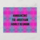 Anuncie su reunión familiar en un estilo vibrante y de tintes de empate con esta barata postal. La parte delantera de esta tarjeta tiene un patrón neón de rosa y azul junto con el nombre y la invitación de tu familia. En la parte trasera hay mucho espacio para personalizar la información sobre eventos familiares.