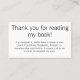 Una de las cosas más difíciles que un escritor debe hacer es pedir reseñas. Encajar esta tarjeta en cada libro que vendes en persona puede hacerlo un poco más fácil, ya que muchos lectores no se dan cuenta de lo mucho que significa para un autor escuchar que amaban tu libro. Este diseño elegante animará a los lectores a seguir su ejemplo y les permitirá ser reflexivos sin tener que pensar demasiado. ;) Después de todo, un poco de agradecimiento va mucho.