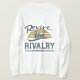 Un diseño dinámico y competitivo que presenta el texto "Revive la rivalidad" en colores audaces y contrastantes, un patrón que evoca un sentido de competencia y emoción.