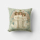 Este 16" x 16" almohada de tiro/amortiguador cuadrados se adorna con tres ángeles hermosos del vintage de una postal británica vieja. Bajo ángeles son las palabras de la adoración "rey del Jesucristo de la gloria."