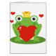 Rey coronado de la rana que lleva a cabo un corazón rojo agradable.
