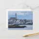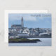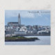 Esta postal ofrece una foto de Reykjavík, vista del agua. Usted puede ver Hallgrímskirkja el elevarse sobre el otro, edificios más pequeños.